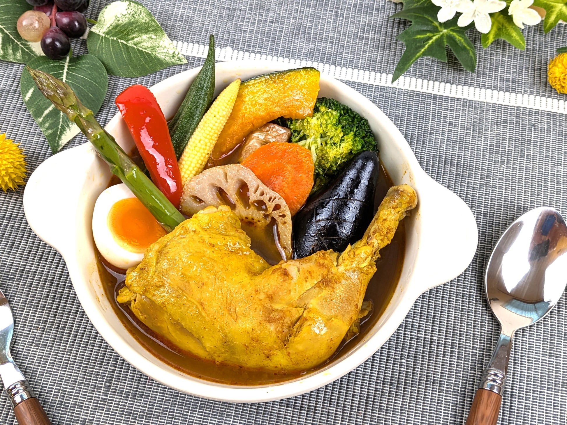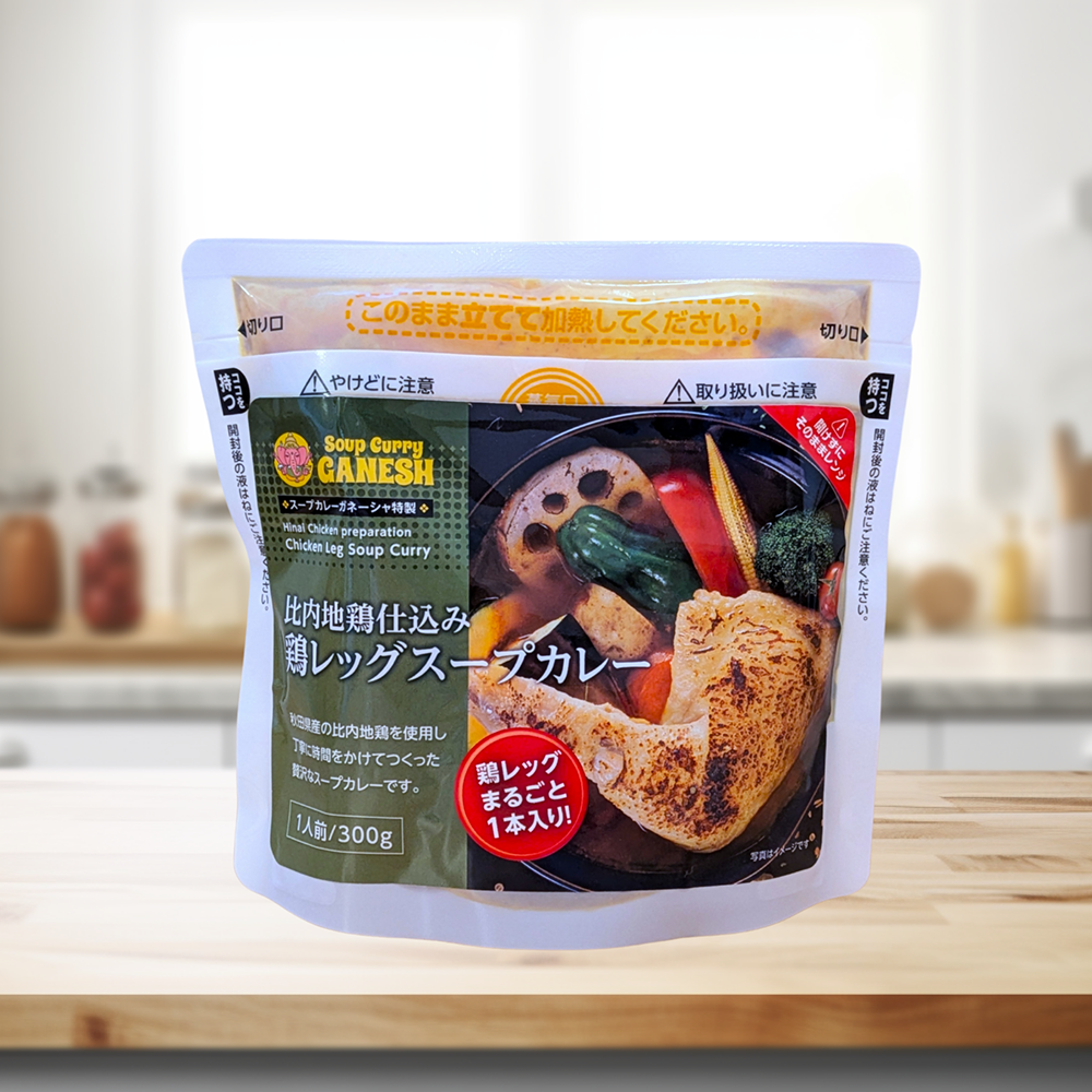 比内地鶏ガラをじっくり煮込んだ濃厚スープに、ほろほろに煮込んだ柔らかい鶏レッグを贅沢に丸ごと1本使用した本格派スープカレーです。電子レンジで温めるだけで、手軽にお店の味を再現できるのが魅力。忙しい日や特別な食事にぴったりの一品です。